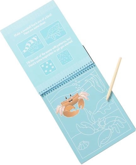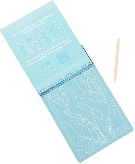 Ez a kapargatós füzet a tengeri élővilág motívumaival végtelen órákig tartó kreatív szórakozást nyújt a gyerekeknek. Elég finoman megkaparni a felső réteget a speciális fa stylusszal, és a színes jelenetek halakkal, teknősökkel vagy csikóhalakkal fokozatosan előtűnnek. A tevékenység intuitív, motiváló, és nem igényel festéket vagy ragasztót.