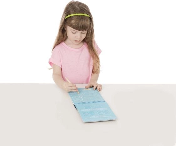 A speciális réteg élénk színeket rejt, amelyeket a gyerekek fa stylusszal fednek fel. Tiszta alkotás festék és ecset nélkül.