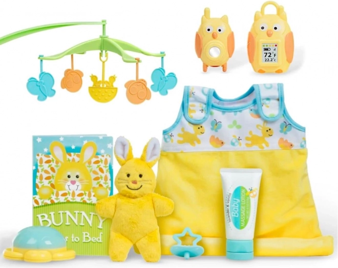 A babák és plüssállatok elaltatására szolgáló készlet tökéletes kiegészítő azoknak a gyerekeknek, akik imádják a szerepjátékokat és a játékaikról való gondoskodást. Különböző elemeket tartalmaz, amelyek segítik a gyermek képzelőerejének és finom motorikus készségeinek fejlődését.