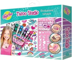 Fedezze fel a kreatív, ideiglenes tetoválásokhoz készült készletet, amellyel a gyerekek könnyedén megalkothatják saját, egyedi motívumaikat. A csomagban találhatóak csillámos filctollak, sablonok, öntapadó strasszkövek és dekoratív matricák az egyszerű díszítéshez. Egyszerű felvitel, élénk színek és ragyogó hatás támogatják a fantáziát és a finommotorikát.