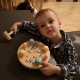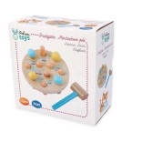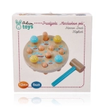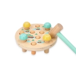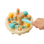 A Fa kalapácsjáték Répa mező egy kerek fa alapot kínál lyukakkal, melyben színes, répa alakú fa rudak vannak. A gyermek feladata, hogy a répát egy barátságos gyermek kalapáccsal a helyére üsse, ami egy menta színű nyéllel rendelkezik, ideális a kis kezek számára. Gyors ütésekkel a gyerekek nemcsak a szem-kéz koordinációt és a finommotoros képességeket fejlesztik, de megértik az ok-okozati összefüggéseket is. A játék végeztével elég a talapot megfordítani, a répát kihúzni, és újra kezdeni!