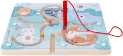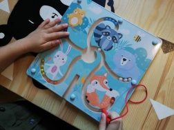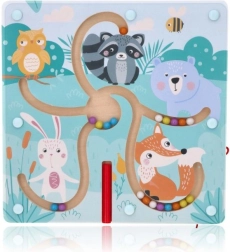 A vidám, erdei állatkákkal díszített mágneses labirintus játékká varázsolja a tanulást. A gyermek a mágneses pálcával kanyargós ösvényeken vezeti a golyókat, színeket párosít, és gyakorolja a koncentrációt és a pontosságot. A zárt kialakításnak köszönhetően a golyók nem vesznek el, a játék pedig otthon és utazás közben is biztonságos.
