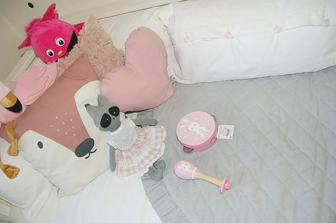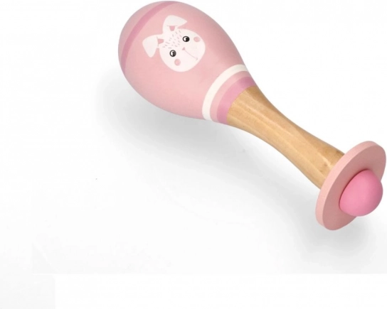 Ez a bájos, rózsaszín, nyuszis, fa maracas remek első hangszer a legkisebbeknek. A csörgő finom hangja támogatja a hallás, a ritmusérzék és a természetes kíváncsiság fejlődését, miközben formája és mérete tökéletesen illeszkedik a kis kezekhez. A természetes fa, a sima felület és a gondosan lekerekített élek mindennap biztonságos játékot biztosítanak.