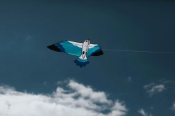 A kontrasztos kék-fehér szárnyak jól kivehetők az égen, így a sárkány mindig ellenőrzés alatt tartható.