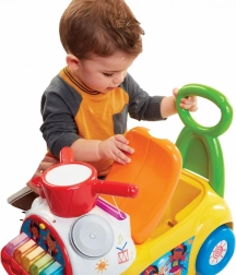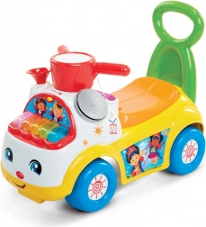 Szórakoztató és biztonságos lábbal hajtható járgány 12–36 hónapos gyermekeknek, 20 kg-ig, zenés panellel és ülés alatti tárolóval. Támogatja a finom- és nagymozgások fejlesztését, az első lépések tanulását, valamint a érzékszervi stimulációt vidám színekkel és 5 induló dallammal.