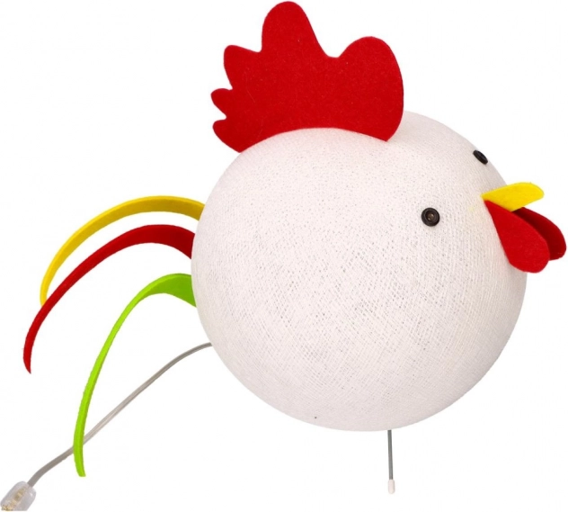 Bájos, kakas alakú lámpa játékos hangulatot visz bármely enteriőrbe. Olaszországban kézzel készül, a gömb átmérője kb. 24 cm, és füllel ellátott, színes díszdobozban érkezik – ajándéknak is ideális. Remek választás gyerekszobába, illetve design kiegészítőként. A termék nem játék.