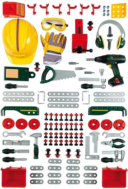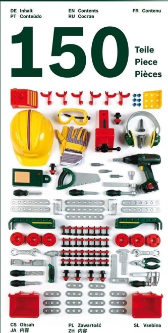 Szerezz örömet a gyerekeknek a valósághű BOSCH munkapaddal, amely hűen utánozza a valódi műhelyfelszerelést. A gazdag, 150 elemből álló készlet révén a gyerekek kipróbálhatják az alapvető „kézműves” tevékenységeket, a válogatást, csavarozást és építést, miközben fejlődik a képzelőerejük és készségeik.
