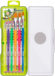 Ergonómikus festőecset-készlet fogantyúval kis művészeknek és kezdőknek. A kényelmes fogás biztosítja a magabiztos és pontos kézvezetést, a 17,5–19 cm-es hossz különféle festési technikákat fed le, a CE megfelelőségi nyilatkozat pedig garantálja a biztonsági követelmények teljesülését.