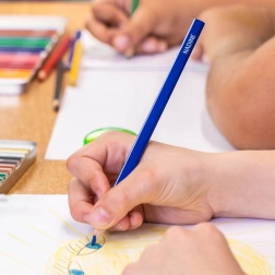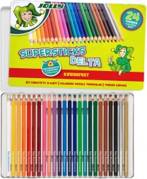 A DELTA háromszögletű színesceruzák praktikus fémdobozban érkeznek, benne 24 árnyalat gazdag palettájával, amely otthon és útközben is védi a tartalmat. Az ergonomikus, háromszögletű profil támogatja a helyes ceruzafogást és a kényelmes rajzolást kézfáradás nélkül, amit a gyerekek és a szülők egyaránt értékelnek.
