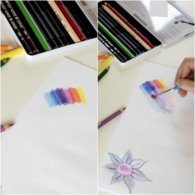 A ceruzák vízzel könnyedén elmoshatók – néhány ecsetvonás is elegendő a finom akvarell átmenetekhez és effektekhez.