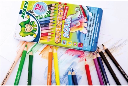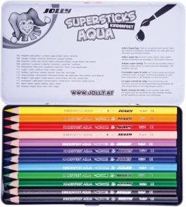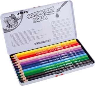Fedezze fel a kreatív lehetőségeket a JOLLY Supersticks Aqua akvarell ceruzákkal. Használja szárazon a telt fedésért, vagy adjon hozzá vizet, és alakítsa a vonásokat finom akvarell festménnyé. A fémdoboz védi a ceruzákat útközben és otthon, és átláthatóan rendezetten tartja őket.