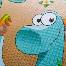 Kétoldalas dizájn: Az egyik oldalán állatok, a másikon dinoszauruszok rajzai találhatók, amelyek segítenek a gyerekeknek megismerkedni a világukkal.
