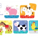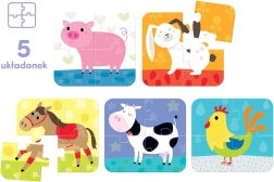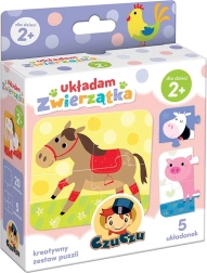 CzuCzu Puzzle Állatkák Kirakása öt kirakós készletet kínál kedvelt gyermek állatmotívumokkal: lócska, tehénke, csibe, malacka és nyuszi. Tökéletesek a gyermeki koordináció és a logikai gondolkodás fejlesztésére már korai életkorban.