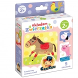 CzuCzu Puzzle Állatkák Kirakása egy öt egyszerű kirakósból álló készlet, amely ideális már kétéves gyermekek számára. Minden kirakós 4 darabból áll, ami támogatja a koordinációt és a kreatív gondolkodást.
