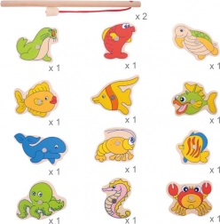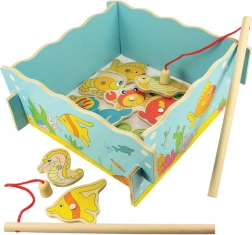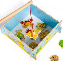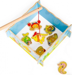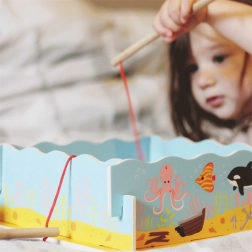 Ragadd meg a botot, és indulj a víz alatti világ felfedezésére! Ez a mágneses, fából készült játék egyszerre szórakoztat és fejleszt – a gyerekek gyakorolják a finommotorikát, a szem–kéz koordinációt és a türelmet. A készlet tartalma: 12 tengeri élőlény, 2 horgászbot és egy masszív, akvárium alakú fa doboz. Ideális játék 3 éves kortól, minőségi fából, biztonságos festékekkel.