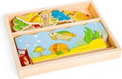 - 12 tengeri élőlény, 2 mágneses horgászbot, masszív fa doboz (az akvárium kerete)