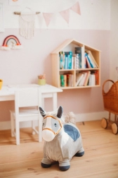 A kellemesen puha felület és az ugráló szamár stabil formája játékra csábít, és segít a gyerekeknek megőrizni az egyensúlyukat. A kényelmes, 28 cm-es ülésmagasság megkönnyíti a felülést.