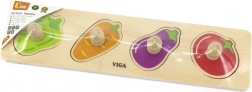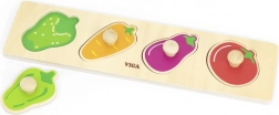 Ez a minőségi, fából készült kirakó zöldségformákkal (paprika, répa, padlizsán, paradicsom) ideális első puzzle 1 éves kortól. A nagy elemek fogantyús gombokkal támogatják a helyes fogást, fejlesztik a kéz–szem koordinációt, és segítenek a gyerekeknek megkülönböztetni a színeket és formákat.