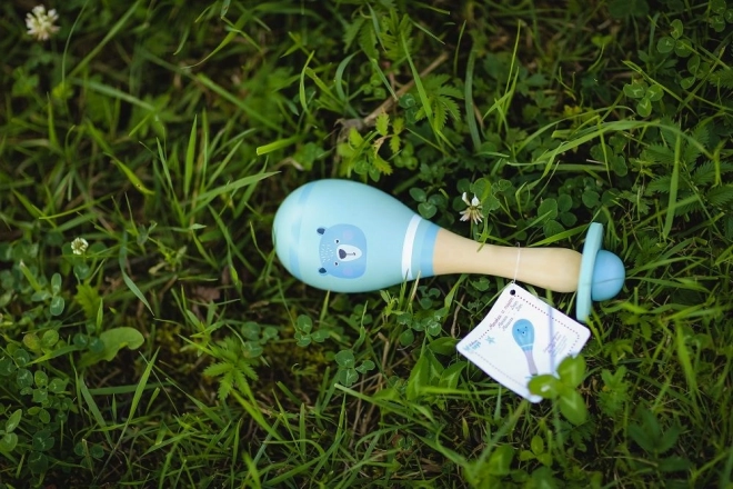 A sima felületű, kiegyensúlyozott formájú fa nyél kényelmes fogást és biztonságos rázást tesz lehetővé már 5 hónapos kortól.