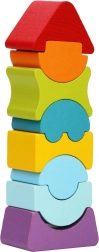 A torony építése kihívást nyújt a gyerekeknek a lekerekített elemek elhelyezésével, hogy a szerkezet stabil legyen, ugyanakkor lehetőséget ad a torony megdöntésének felfedezésére is.