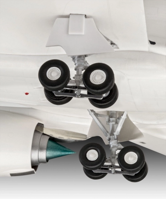 Ez a repülőgép modell valósághű részletekkel rendelkezik, beleértve a futóművet és a Lufthansa jellegzetes vállalati jeleit.