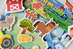 Változtassa a mindennapi fürdést vidám tanyasi kalanddá! A színes habmatricák benedvesítve könnyen tapadnak a kádra, csempére vagy üvegre, és a könnyű anyagnak köszönhetően a víz felszínén is lebegnek. A csomag része egy praktikus háló tapadókorongokkal az egyszerű szárításhoz és tároláshoz. Ideális 3 éves kortól, a biztonságos, kreatív és fejlesztő vízi játékhoz.
