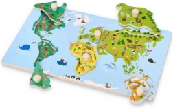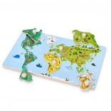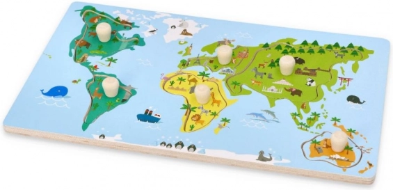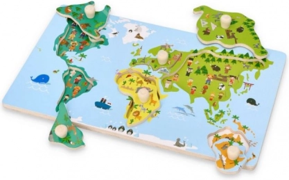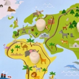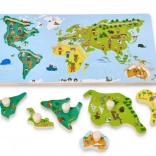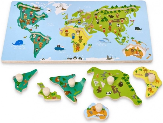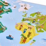 A puzzle a kontinenseket élénk színekkel és rajzolt állatokkal és nevezetességekkel ábrázolja, ami megkönnyíti a gyerekek számára a tanulást és szórakoztatóvá teszi a földrajzot.
