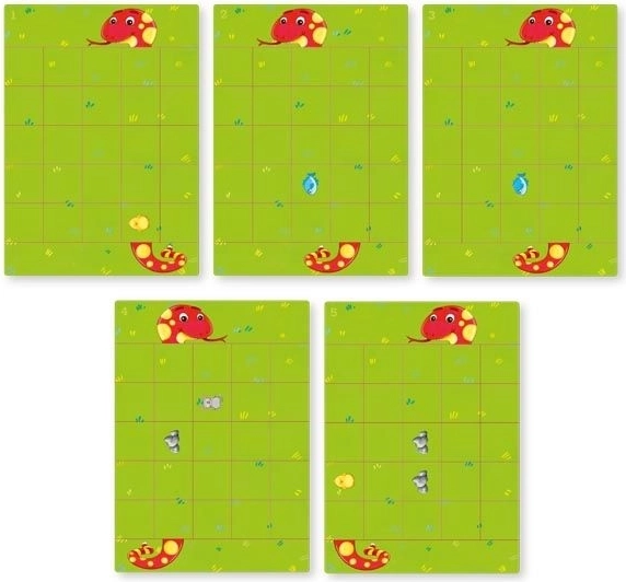 A játékban helyezze a játékkártyát az alapkeretbe, majd mágneses darabok segítségével alakítsa ki az utat, amelyen a kígyó eljut a megjelenített élelemhez. Mind a 22 játékváltozat különböző kihívásokat kínál, és fokozatosan növeli a nehézséget.