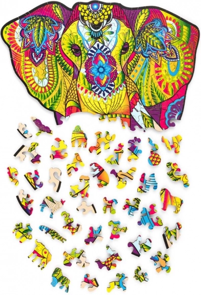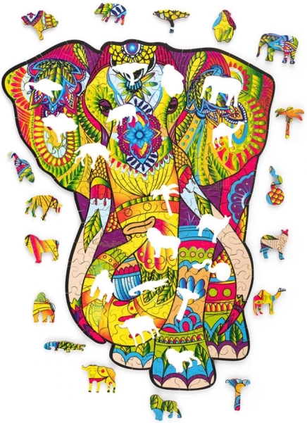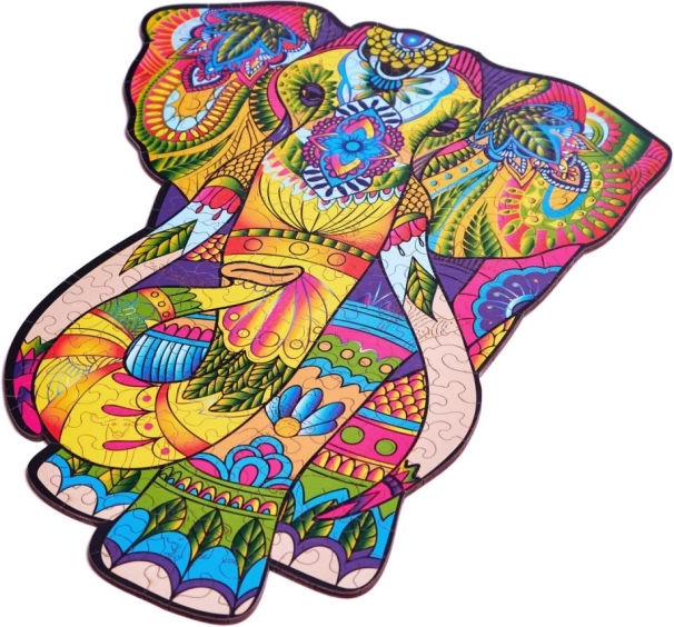Ez a részletgazdagon kidolgozott, minőségi fából készült elefánt kirakó elbűvöl a finom mintákkal és a telt színekkel. Ideális tinédzsereknek és felnőtteknek, akik stílusos szórakozást és belső térbe illő design kiegészítőt keresnek.