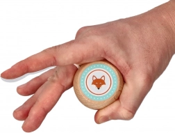 Minőségi fa test vidám mintákkal (róka, szív, gomba stb.), kellemes fogás és játékra csábító megjelenés.