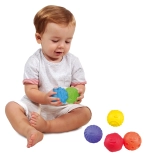 A texturált labdák készlete tartalmaz 6 különféle labdát eltérő textúrával és színekkel, ideális szórakoztató játékhoz és az érzékek stimulálásához.