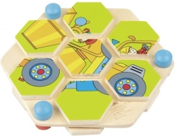 Ez a fa hatszögletű puzzle játék segít a problémamegoldó készségek fejlesztésében és játék közbeni tanulásra motivál.