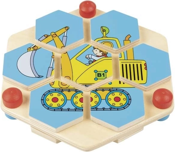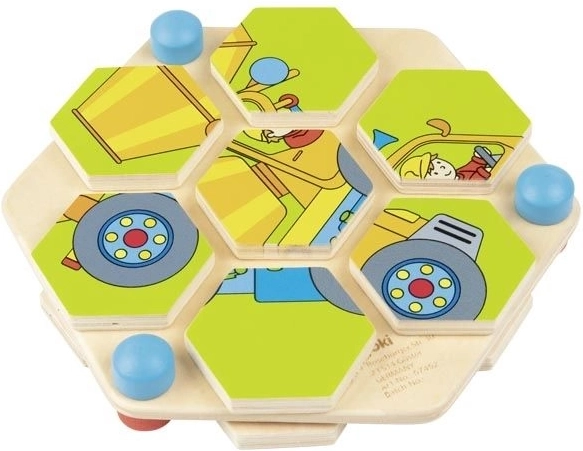 Engedje, hogy gyermeke belépjen a kreativitás világába ezzel a gyönyörű fa hatszögű kirakóval. Minden forgó hatszög helyesen kell, hogy álljon a színes építőgép kép kialakításához. Ez a fejtörő egy masszív, természetes fa táblán van elhelyezve, garantálva a hosszú élettartamot és az ökológiai jelleget. A játék nemcsak hogy órákig tartó szórakozást nyújt, hanem segíti a logikus gondolkodás és a szem-kéz koordináció fejlesztését is.