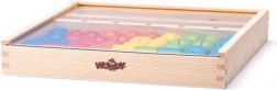 Kreatív és oktató készlet, amely ötvözi a tanulást és a szórakozást. A gyerekek színes gyöngyöket fűznek fel a rudakra a mintakártyák szerint, így fejlesztve a vizuális memóriát, a logikus gondolkodást, a matematikai készségeket és a finommotorikát. Minden egy masszív fa dobozban található, amely a játék alapjául is szolgál.
