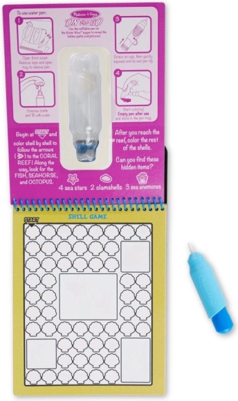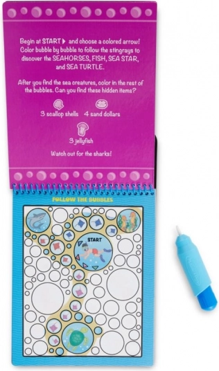 Az interaktív vizes kifestő az On the Go sorozatból órákig tartó kreatív szórakozást nyújt a gyerekeknek. Az újratölthető vizes toll a lapokon felfedi a tengeri világot, feladatokat és útvesztőket, amelyek száradás után ismét eltűnnek – és kezdődhet a festés elölről.