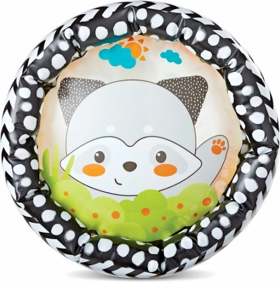 Az INFANTINO felfújható hengert úgy tervezték, hogy természetes módon támogassa a nagymozgásokat, a kéz–szem koordinációt és az első kúszási próbálkozásokat. A gyerekeket lenyűgözi a színes állatkákkal díszített átlátszó dizájn, miközben a belül rejtőző csörgős golyók guruláskor kellemesen csilingelnek, és stimulálják a hallást és a látást.
