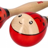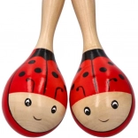 A vidám, katicabogár mintás rumba gömbök gyermekkezekhez készültek – sima, ergonomikus fa fogantyúval és tartós, színesre lakkozott fejekkel. Játék közben kellemes csörgő hangokat keltenek, amelyek bátorítják a gyerekeket a ritmus felfedezésére és a közös zenélésre.