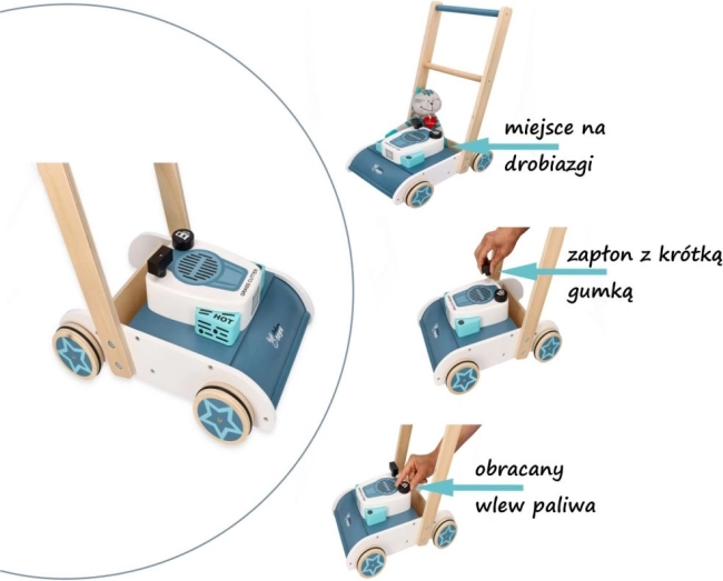 A fa fűnyíró hanggal ideális választás minden kis kertész számára. Ez a játék úgy lett tervezve, hogy segítse a gyerekeket a koordináció és egyensúly fejlesztésében. Annak ellenére, hogy támogatja a járást, nem hagyományos járássegítő az első lépések megtanulásához.