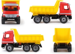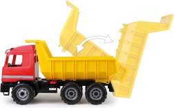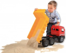 A billenő teherautó tartós műanyagból készült, így alkalmas kültéri és beltéri használatra egyaránt.
