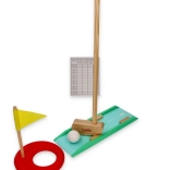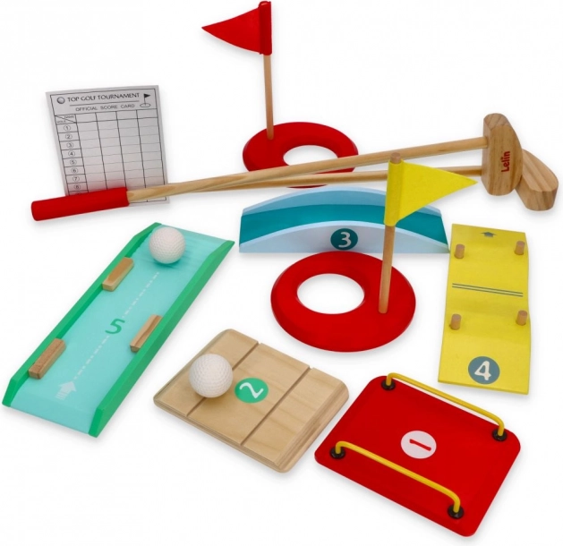 Fedezze fel a minigolf varázsát gyermek kivitelben. Ez a minőségi készlet a fa alkatrészeket tartós műanyag elemekkel ötvözi, hogy a játék szórakoztató, biztonságos és változatos legyen. A gyerekek saját pályákat építhetnek, mérhetik az ütés erejét, és a pontozólapon követhetik az eredményt – kiváló alap a türelem, a pontosság és a csapatmunka fejlesztéséhez.