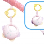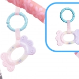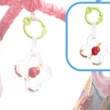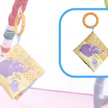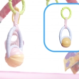 - Szőnyeg ívekre függesztett játékokkal: Színes játékok vonzzák a baba figyelmét, és ösztönzik a nyak, a karok és a lábak izmainak erősítésére.