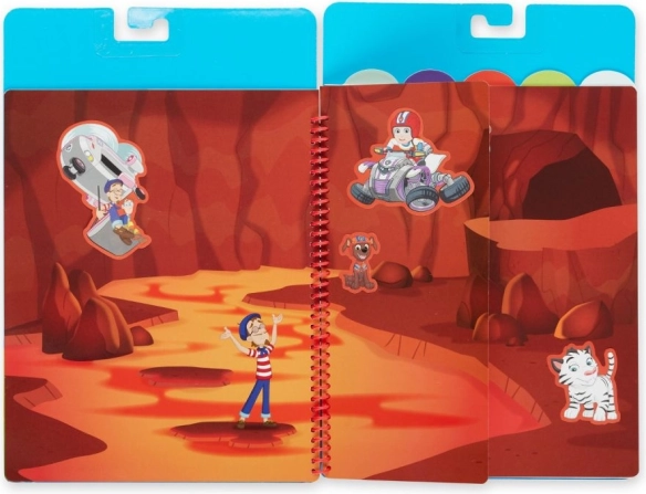 Fedezd fel a Mancs őrjárat hőseinek világát az átragasztható flip–flap blokkal, amely színes jeleneteket és számos, ismételten felhasználható matricát kínál. A gyerekek saját küldetéseket alkothatnak, áthelyezhetik a figurákat és járműveket, és újra meg újra új történeteket rakhatnak össze.