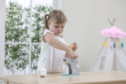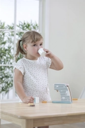 A forgó gomb, a karos tartó és a kapszulák lehetővé teszik a gyerekeknek, hogy „espressót” készítsenek, mint egy igazi kávézóban. Szórakoztató játék és a fantázia fejlesztése.