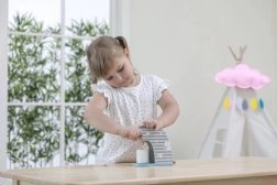 Tartós szerkezet sima, lakkozott fából, lágy színekkel és gyerekbarát motívumokkal – ideális a mindennapos játékhoz.