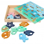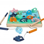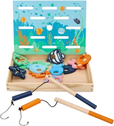 A fa horgászjáték gyerekek számára készült, akik szeretnek játszani és új dolgokat tanulni. Ez az interaktív készlet tartalmaz fa botokat mágnesekkel és színesen festett halacskákkal, melyek úgy vannak kialakítva, hogy szimulálják a valódi halak fogását.
