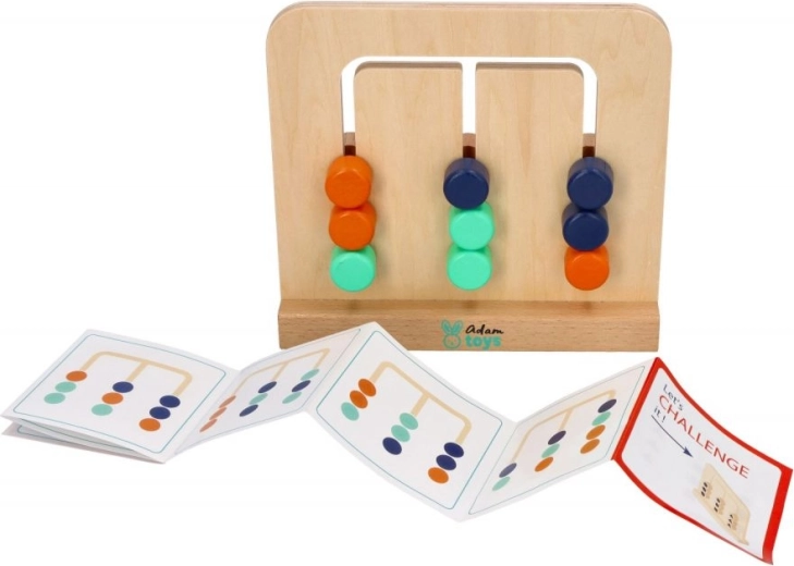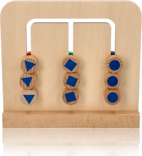 A készlet fa kirakót tartalmaz 9 blokkal 3 színben vagy a másik oldalon 3 mintával, valamint egy kétoldalas füzetet térképkártyákkal. A szórakozás lényege, hogy a blokkokat úgy rendezd át, hogy az általad választott mintát alkossák.