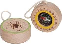 Fedezd fel a világot a GOKI fa iránytűjével, amely ötvözi a praktikus funkcionalitást és a játékos dizájnt. Az iránytűn zsinór található, így könnyen rögzíthető ruhára vagy hátizsákra, ezért a gyerekek mindig kéznél tarthatják. Az egyik oldal működő iránytűként szolgál, a másikat bájos pók díszíti pókhálóban.