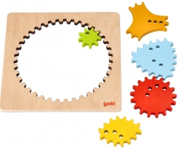 A keret és a 5 különböző fogazott forma támogatja a finommotorikát, a koncentrációt és a grafomotorika fejlesztését. A minőségi fa kivitel és a gondosan megmunkált elemek biztonságosak és kellemes tapintásúak.