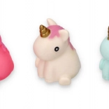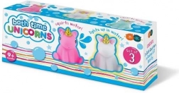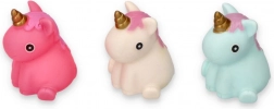 Fedezd fel a fürdés varázslatos világát a lágy színekben pompázó egyszarvús készlettel. Minden egyszarvún aranyszarv és vidám sörény díszeleg, amelyek ösztönzik a gyermeki fantáziát. A kellemesen puha anyagnak köszönhetően könnyen összenyomhatók, és ideálisak a kis gyerekkezek számára.
