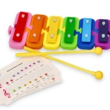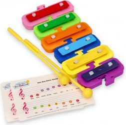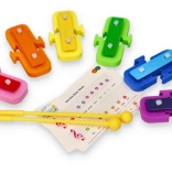 Hét élénk színű léc segíti a gyerekeket a ritmus, a színek és az egyszerű dallamok gyors elsajátításában.